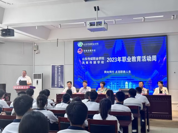济南传媒优秀毕业生王冰发言感恩济南传媒学校的培养,介绍了现在就读的山东传媒职业学院丰富精彩的大学生活,激励学弟学妹珍惜时光,努力拼搏,争取早日在山东传媒职业学院相聚。山东传媒职业学院优秀毕业生济南展翅电子商务有限公司负责人孙浩回顾了山东传媒职业学院老师对他就业和创业的指导和帮扶,寄语同学们希望他们努力学习,用技能去实现自己的人生价值,收获锦绣前程。最后,两校领导老师就深度合作专业建设方面进行了研讨,随后举行了优质生源基地揭牌仪式。 守正创新,不断深化合作。山东传媒职业学院与济南传媒学校将整合各方力量、聚合优势资源、采取多种方式,推进纵向贯通合作做深做实。完成人才定制培养,形成人才定制培养新模式,谱写纵向贯通新篇章。努力建成“社会认可、企业满意、特色鲜明”的高质量高水平院校,为地区经济社会高质量发展贡献职教力量。(招办)