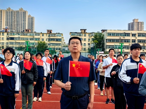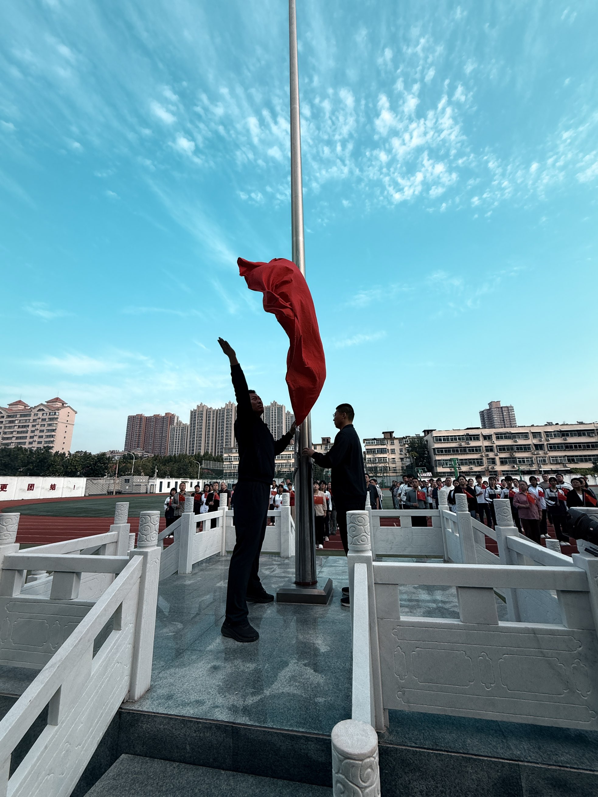 上午八点,升旗仪式正式启动。本次升旗仪式由济南传媒学校学生发展部关琛老师与安全保卫科任家正老师担任升旗手。全场师生肃立,目光聚焦于鲜红的五星红旗。伴随着雄壮激昂的《义勇军进行曲》奏响,国旗缓缓升起、迎风猎猎,全体师生面向国旗行注目礼,高唱国歌,真挚的爱国情感在校园广场上激荡。