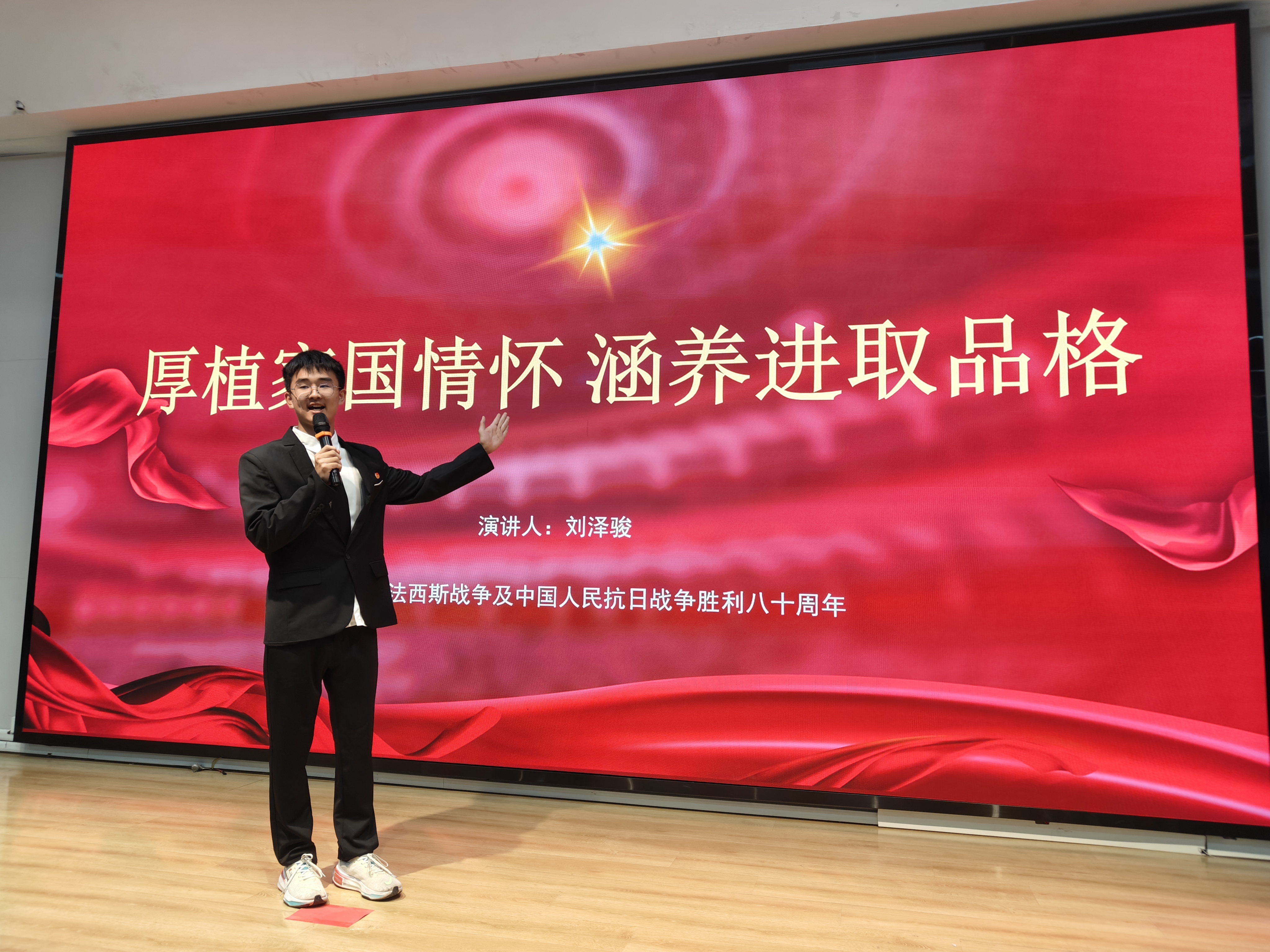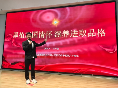 最后,济南传媒学校党总支副书记、校长王月涛致辞,他首先高度评价18位选手以真挚情感和生动语言联结红色历史与青春担当,肯定朗诵社节目展现出的文化传承与艺术追求,希望学子结合传统文化将传承美德、践行“担当”融入日常,如关心长辈、帮做家务、服务社区老人。同时寄语学子以奋斗为青春底色,学好专业、心怀家国,践行“与祖国共成长,以青春写华章” 的誓言。 这场兼具红色底蕴与青春活力的演讲比赛,不仅是济南传媒学校纪念反法西斯胜利 80 周年的生动实践,更是学校以红色文化铸魂、以传媒特色育人的鲜活注脚。未来,学校还将继续依托这片红色土地,开展更多融合动漫、数字媒体、市场营销等专业的红色活动,让学子们在铭记历史中汲取力量,在锤炼技能中践行担当,真正做到与祖国共成长,以青春写华章!(语文组)