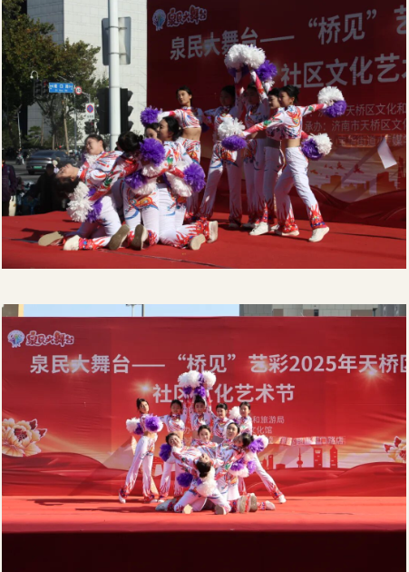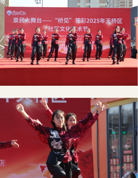在节目展演环节,济南传媒学校继续绽放光彩。排舞《朱雀》中,学子们动作整齐划一、灵动优美,将青春活力与舞蹈美感完美融合;健美操《青春魅力》则以明快的节奏、饱满的热情,展现出当代青年的蓬勃朝气,赢得台下掌声不断。此外,康成花园社区的舞蹈《格桑花》、名泉春晓社区的独唱《十五的月亮》、宝华新居社区的太极扇《二十四式太极拳》等节目轮番上演,居民们自编自演的精彩内容,让“泉民大舞台”真正成为百姓展示自我的平台。