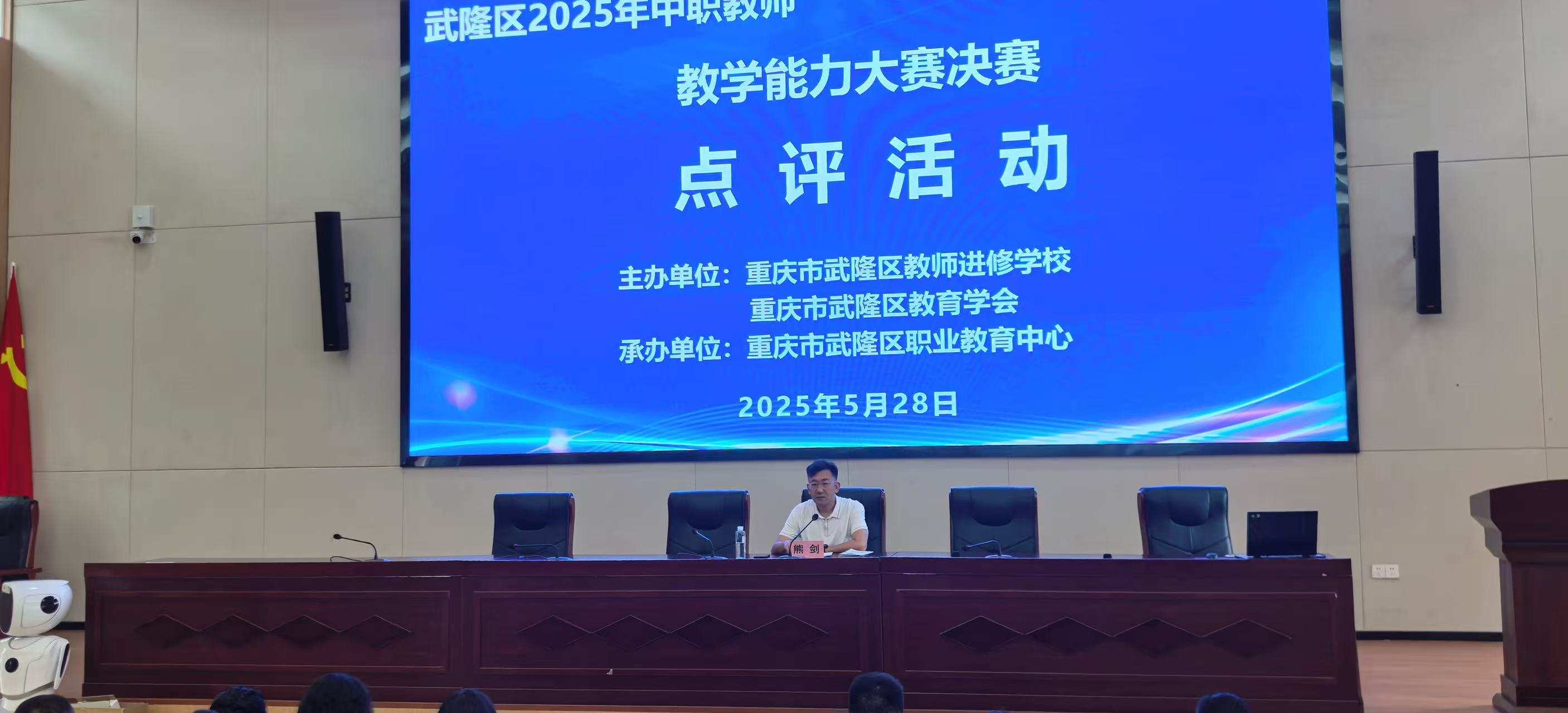二、聚焦教学端,激活职教“新动能” (一)以赛促教,培育师生“新优势” 作为武隆区教师教学能力大赛评委会主任,熊剑全程统筹评审工作,通过听课、评课、专题指导等方式,精准点拨参赛教师,助力优秀教师、团队晋级省级赛事。在国家安全教育优质课、重庆市技能大赛等重要赛事中,他发挥自身大赛经验优势,带领师生解读比赛规则、搭建备赛框架、完善实施细节,还模拟赛场环境开展情境教学演练,最终帮助师生斩获多项省级荣誉。