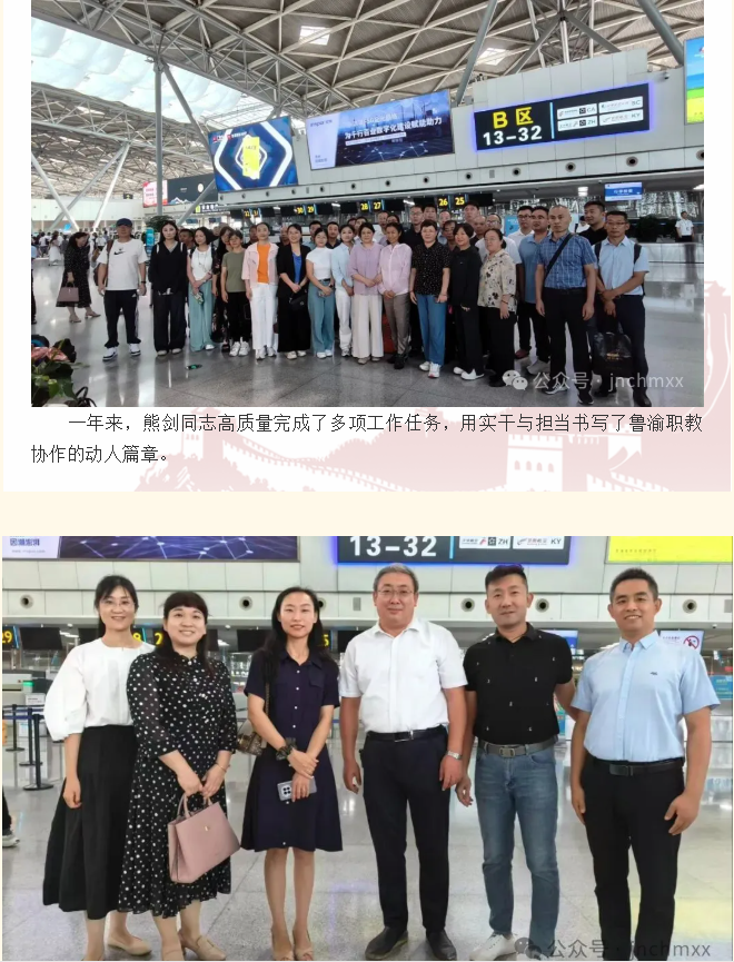 2025年7月,熊剑圆满完成援派任务返回济南。援派期间,他坚持用行动诠释教育帮扶的使命担当,不仅促成了济南与武隆两地职业教育的优势互补,为武隆职教发展注入了新活力,更以突出的教育教学成果获得了武隆区职业教育中心的高度赞誉,是鲁渝教育协作中当之无愧的“实干先锋”。