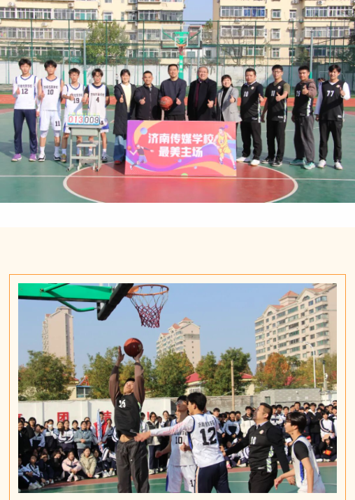 11月4日,济南传媒学校2025年校园篮球赛在篮球场正式拉开帷幕,一场融合艺术展演与体育竞技的校园盛宴精彩上演,为秋日传媒校园注入蓬勃活力。