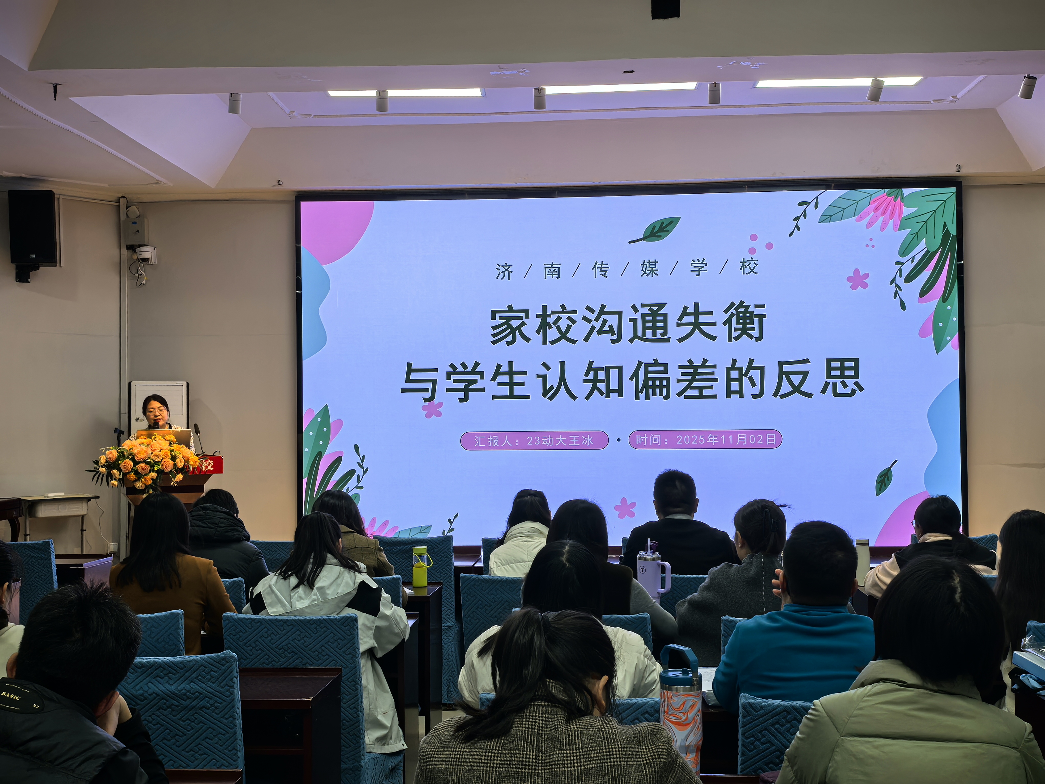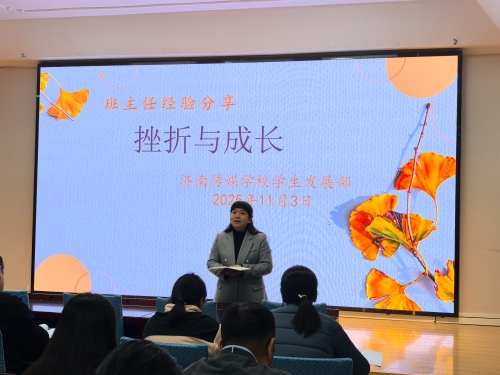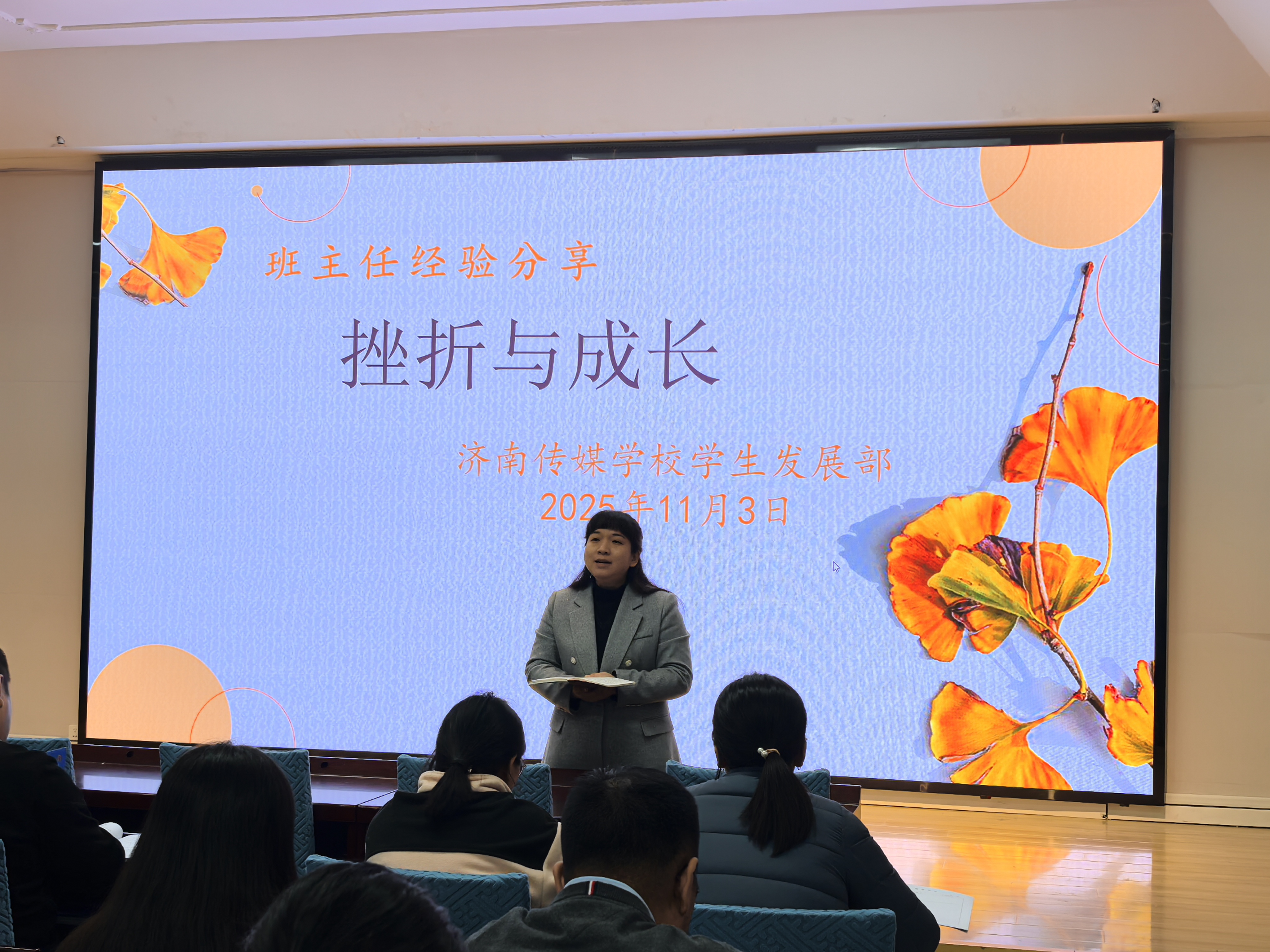 2025年11月3日下午,济南传媒学校在道德讲堂举办第二期班主任经验分享会。本次分享延续首期“挫折与成长”主题,聚焦班级管理,进行反思与总结。于伟、王冰、崔粲然、刘汝岭四位班主任先后作交流发言。