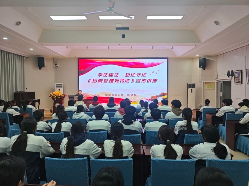 为增强青少年法治意识,筑牢校园安全防线,近日,济南传媒学校邀请济南市天桥区宝华街派出所副所长陈德智与吕海霞警官,开展《中华人民共和国治安管理处罚法》主题宣传讲座,为全校师生呈现一堂生动的“法治必修课”。