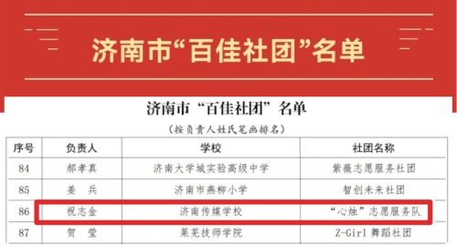 济南市“百佳社团”评选活动由市教育局组织开展,旨在推进全环境立德树人,促进学生社团健康发展,充分发挥学生社团在激发学校办学活力、促进学生成长成才中的重要作用。经市教育局组织专家集中评审,确定100家社团为济南市“百佳社团”。