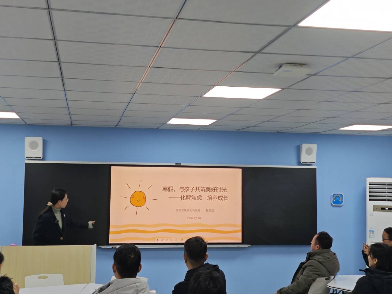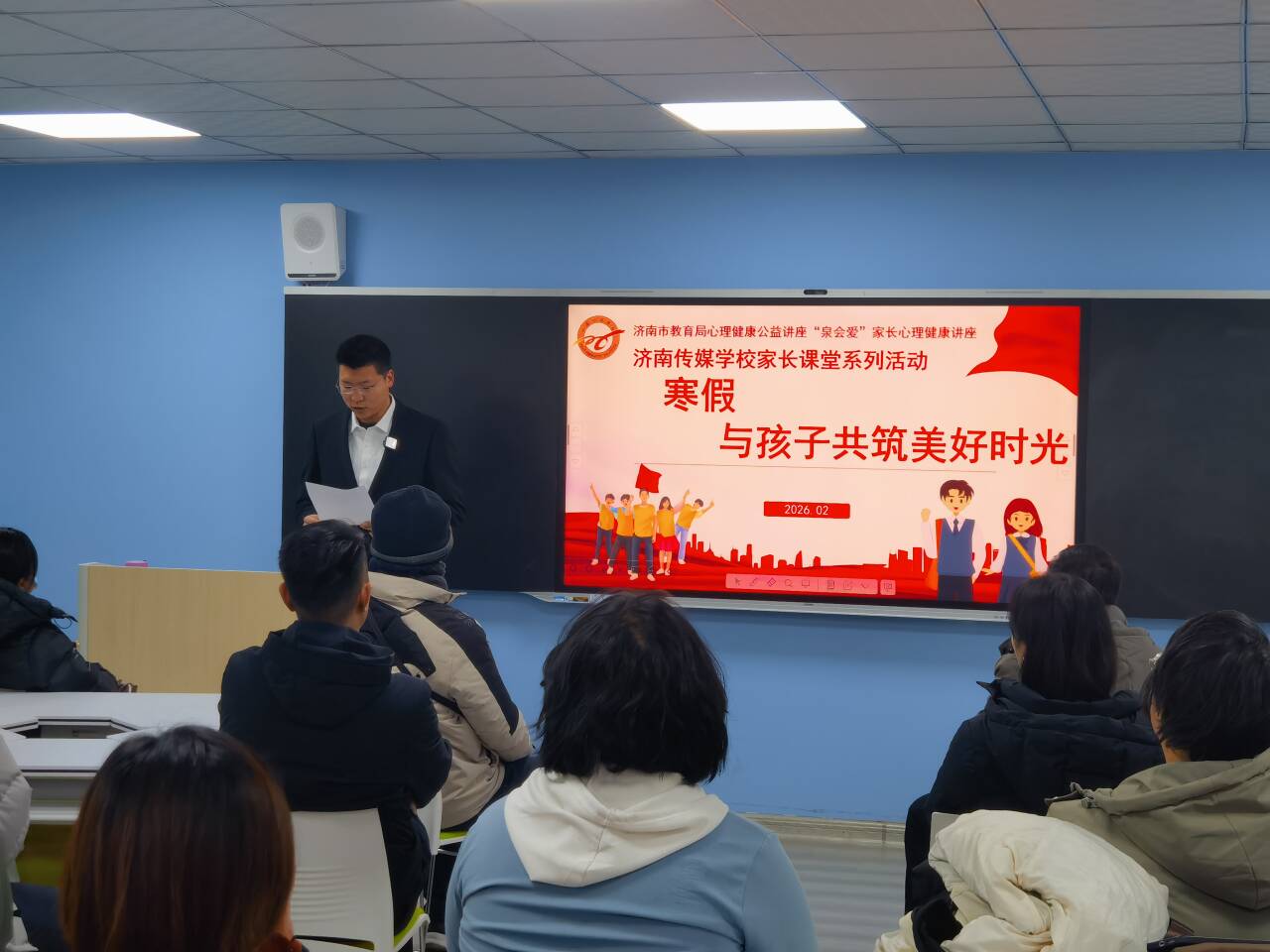 为了更好的做好家校共育工作、凝聚教育合力,2026年2月8日上午,济南传媒学校举办了以《寒假,与孩子共筑美好时光》为主题的家庭教育讲座,主讲人为济南第四人民医院精神科副主任医师杜晶晶。