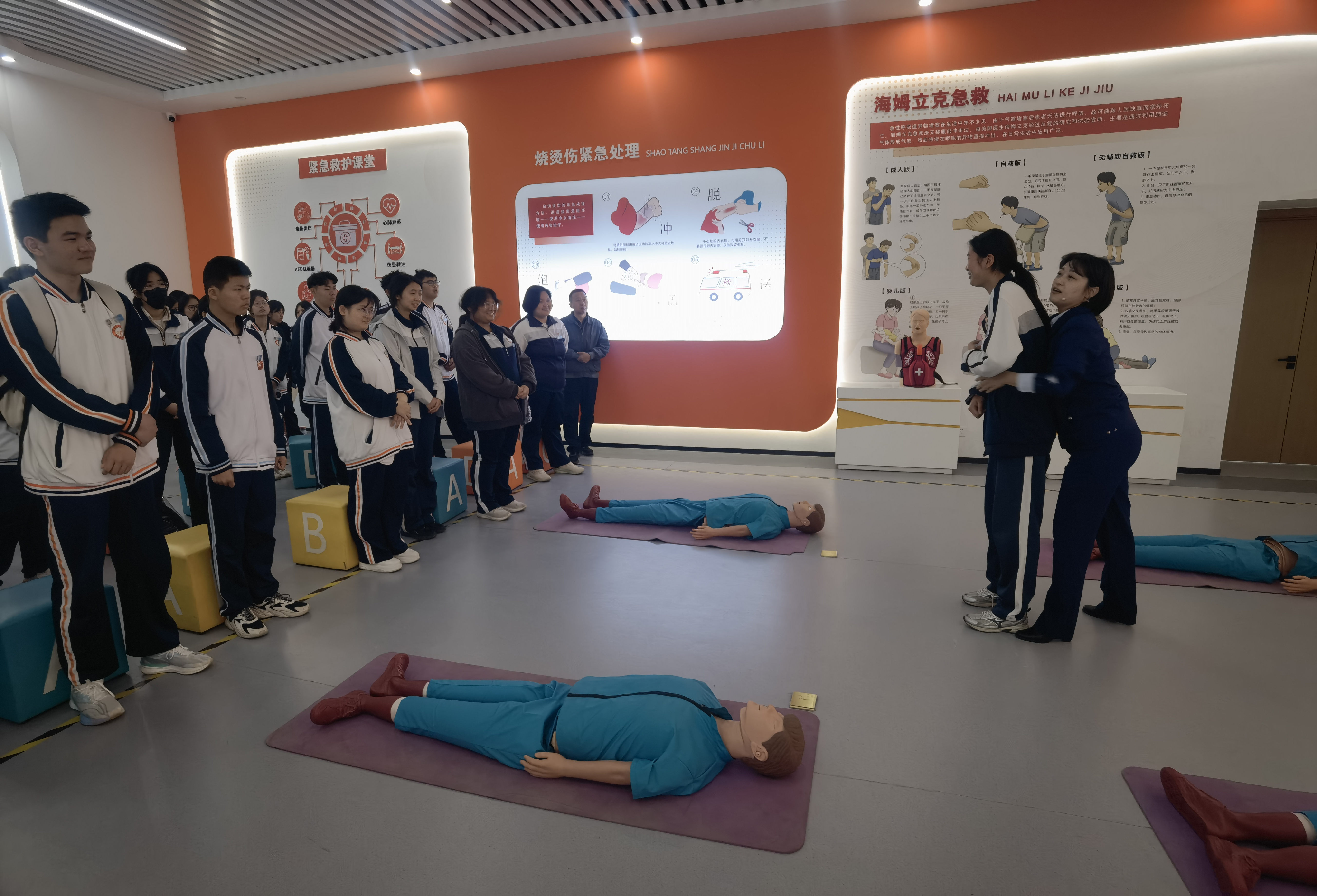 此外,师生们还参观了自然灾害应急避难、紧急救护课堂等展区,并在讲解员的指导下,系统地学习地震避险、海姆立克急救法等应急救护技能,扩展了应急知识储备,有效提升了综合应急处置能力。