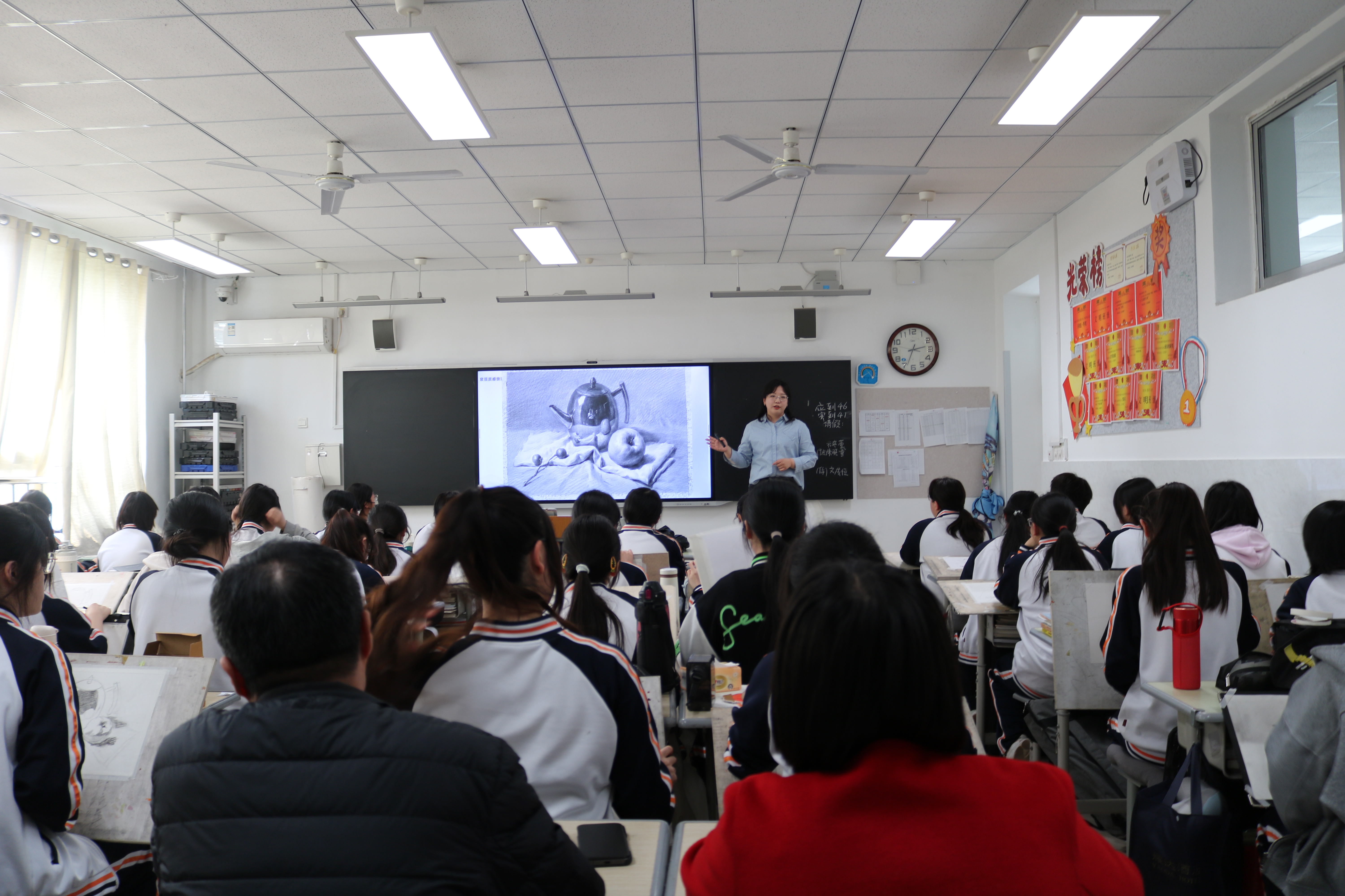 听课问诊,优化课堂设计教研员走进课堂,观摩了青年教师夏爽的素描课。作为艺术设计专业课,老师用生动的范例,方便易记的专业口诀,给学生个性化的指导,让学生感受素描艺术,掌握绘画技艺,提升专业素养。课后,两位教研员对本节课给予了充分的认可,并围绕课堂设计、技能指导等方面进行了点评。