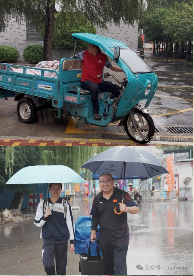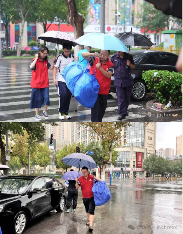 “这么大雨有老师们帮着搬行李,我们就放心了,你们辛苦了!”住宿生家长张先生握着志愿者的手感慨。学生们也说,看到老师们雨中温暖的笑容,就像回到了家。