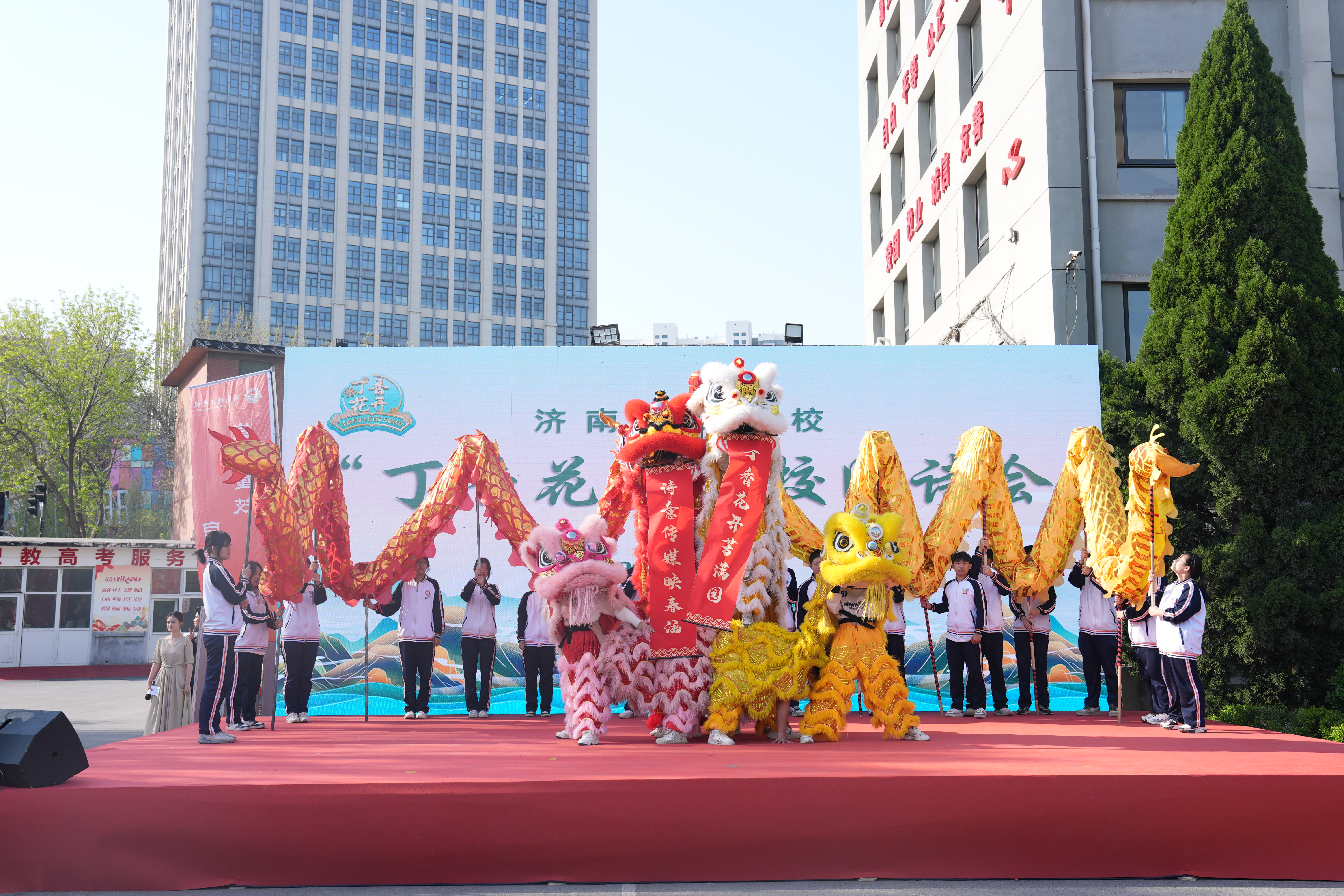 2025年4月3日,暖阳倾洒,丁香广场上繁花绽放、馥郁芬芳。在这诗意盎然的时节,济南传媒学校隆重举办首届“丁香花开”校园诗会集中展示活动。济南传媒学校全体班子成员、在济南传媒学校挂职交流的临夏州职业技术学校成教科副主任马祥军出席活动,部分学生家长也怀着期待莅临现场。此次诗会融合文化与技能育人,为师生带来了一场文化盛宴,中华优秀传统文化在校园内激发出新的活力。