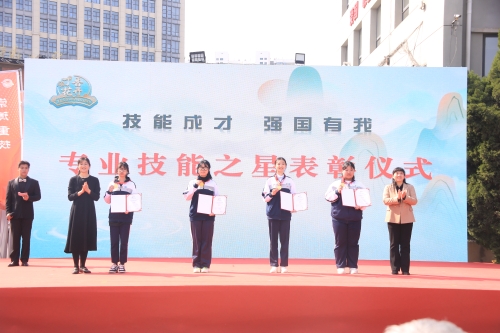 活动中,学校对在2024年世界技能大赛中获得金奖和在技能学习中表现优异的学生进行表彰。济南传媒学校副校长刘鹏宣读表彰决定,副校长王宇、宗金艳以及家长代表为学生颁奖,获奖同学分享了自己拼搏奋斗的心路历程。