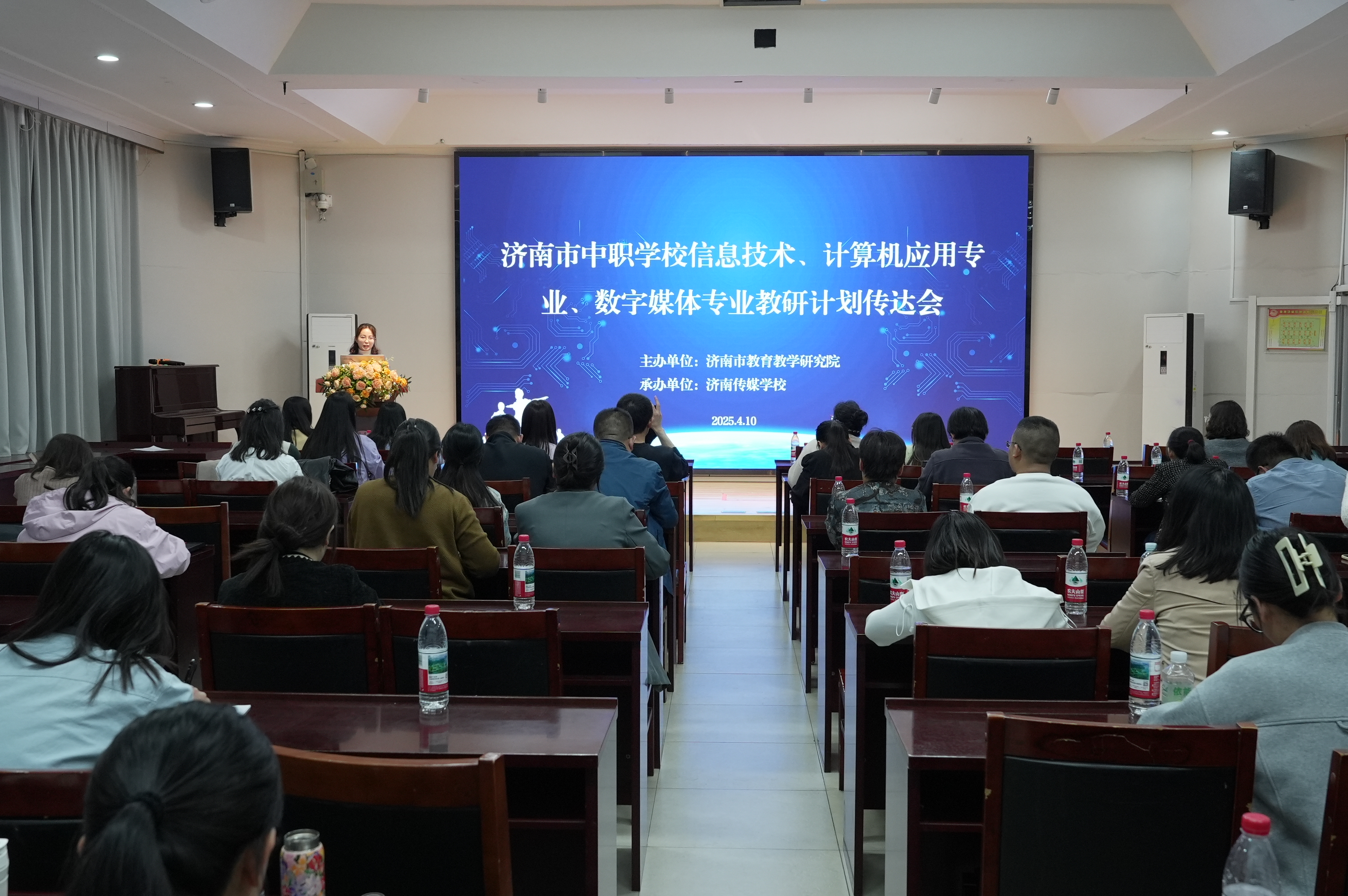 为进一步明确专业教学方向,加强各学校之间交流互鉴,推动职业教育高质量发展,2025年4月10日,2025年济南市中等职业学校信息技术学科、计算机应用专业、数字媒体专业新学期教研计划传达会在济南传媒学校如期举行。济南市教育教学研究院教研员刘琳,以及相关专业教研中心组成员、专指委成员,各中职学校的专业负责人与骨干教师参加本次会议。