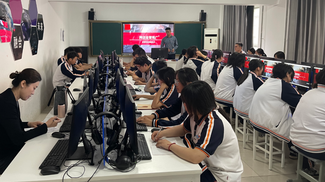 在市场营销专业课堂上,教研员谭菲全程专注聆听张阳老师的授课。张阳老师的课程体系完整有序,将抽象的电商理论知识转化为贴合实际的实用技巧,深入浅出,充分彰显了扎实的专业素养与丰富的教学经验。