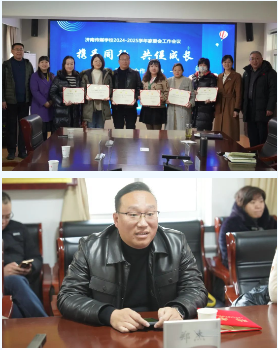 会议第二阶段召开家委会全体成员大会。首先,由董钊书记、王月涛校长、王宇副校长、宗金艳副校长为新当选的家委会成员代表颁发聘书。接着,新任家委会会长郑杰发表了激情洋溢的讲话。他充分肯定了学校一年来在教育教学、服务保障和家校合作等方面取得的显著成效,特别是在提升职教高考班学生学业成绩、自营食堂改善学生伙食、班主任管理和德育教育等方面给予了高度评价。他表示将带领全体家委会成员,继续深化家校合作,积极参与学校组织的各项活动,增进家校互动,促进学生全面发展。随后,副校长王宇向家长详细介绍了学校学生管理、志愿服务、艺体活动等方面取得的长足进步,充分表达了家校共育的重要作用,进一步明确今后学校的重点工作和教育教学的思路方法,在家庭教育、家校合作等方面与家长达成了共识。