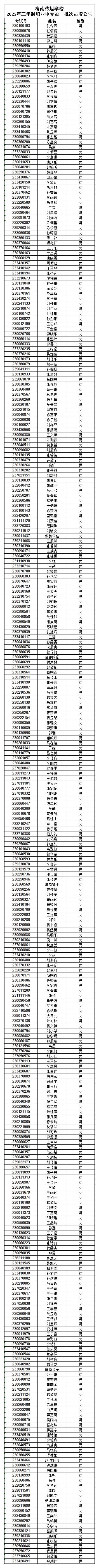 录取名单如下表,请已经被录取的考生7月20日前考生本人携带身份证、准考证到学校招生办公室办理录取手续。逾期未报到视为放弃录取资格,由此造成的后果由考生个人承担!